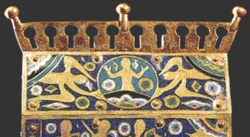 Santo: un grande fregio che ne cinge la veste, le chiavi, i calzari,